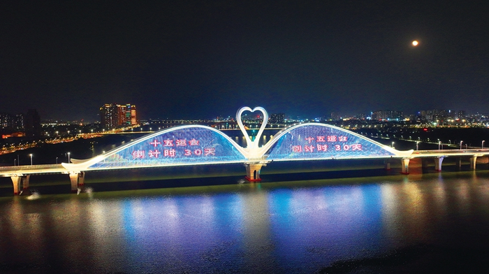 鵝城大橋亮燈喜迎十五運會倒計時一個月